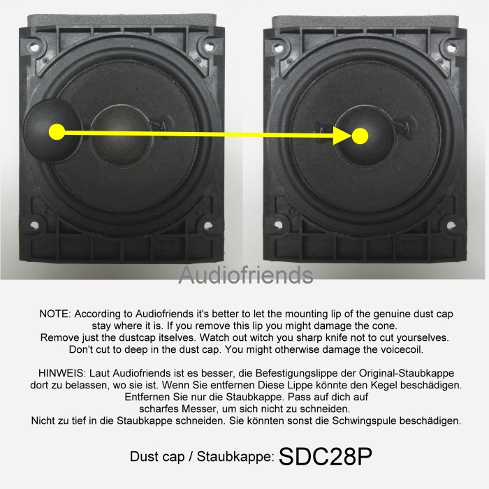 Verbeulte Staubkappe aus Papier optisch und technisch repariert. Die Staubkappe dient nicht nur der Staubvermeidung. Bestimmte papierfeste Staubkappe spielen die hohen Frequenzen des Lautsprechers. Daher ist es wichtig, dass die verbeulte Papierstaubkappe nicht nur optisch, sondern auch technisch korrekt ist. Das machen wir in diesem Video: https://www.youtube.com/watch?v=0D6gi5WqiyI. Der Lautsprecher im Video ist ein Mitteltöner einer Bang & Olufsen Penta. Siehe auch für weitere Handbücher: www.refoam.info. In Engels.